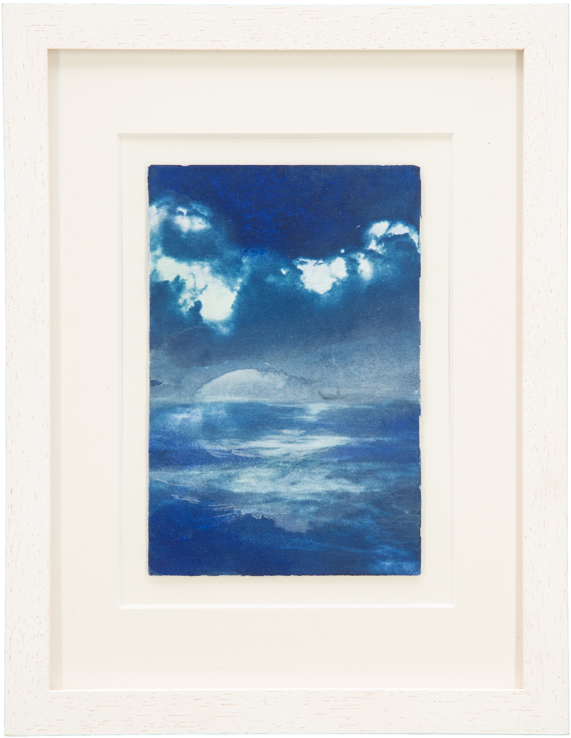 Kathrin Edwards, blue memories (25) 04, Cyanotypie auf Büttenpapier, Aquarell, Unikat, 10x15, Rahmen 15x21, 2025