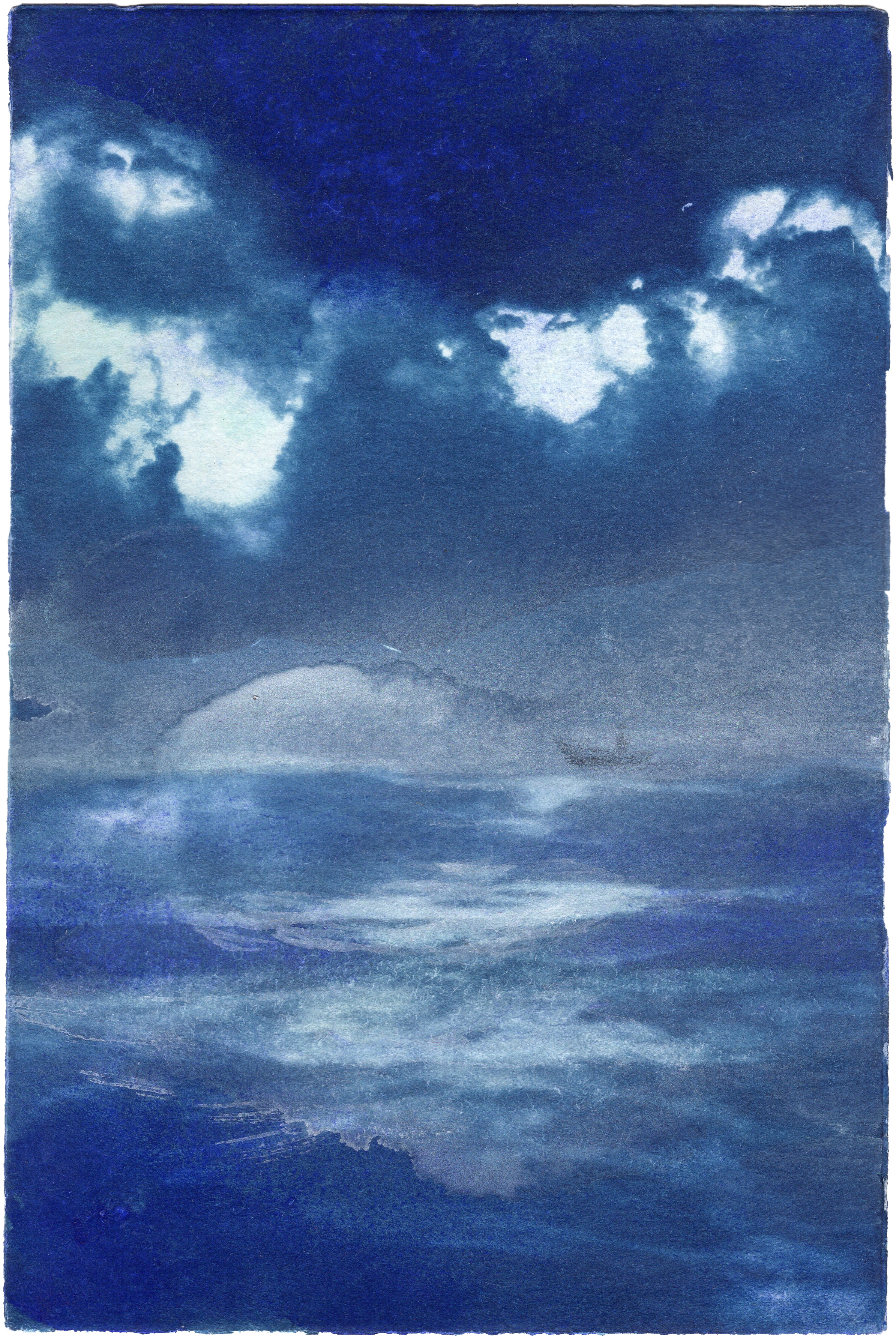 Kathrin Edwards, blue memories (25) 11, Cyanotypie und Aquarell auf Büttenpapier, Unikat, 11,6 x 17,1 cm, 2025