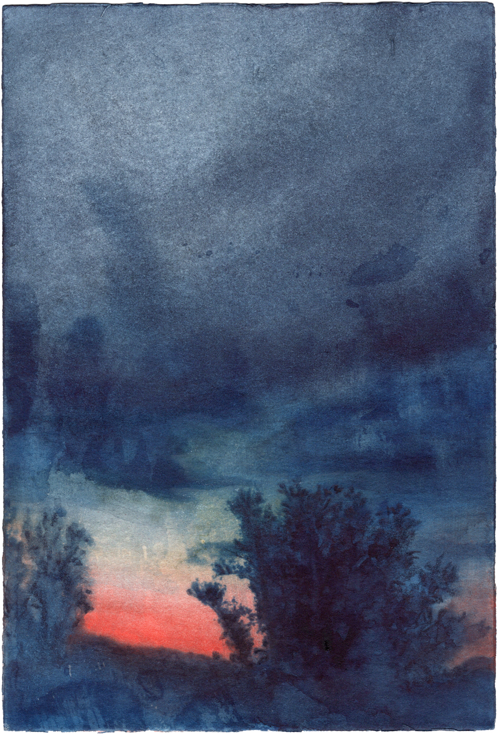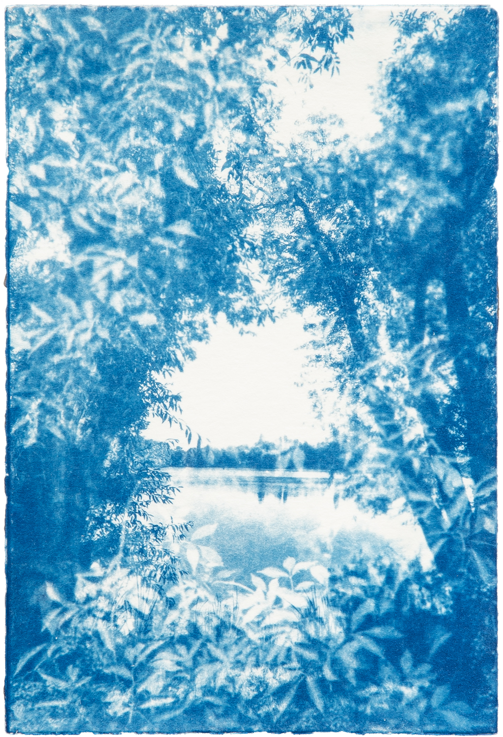 Kathrin Edwards, light and shadow (25) 2, Cyanotypie und Aquarell auf Büttenpapier, Unikat, 11,6 x 17,1 cm, 2025