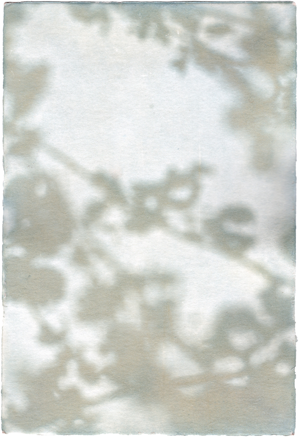Kathrin Edwards, light and shadow (25) 1, Cyanotypie und Aquarell auf Büttenpapier, Unikat, 11,6 x 17,1 cm, 2025